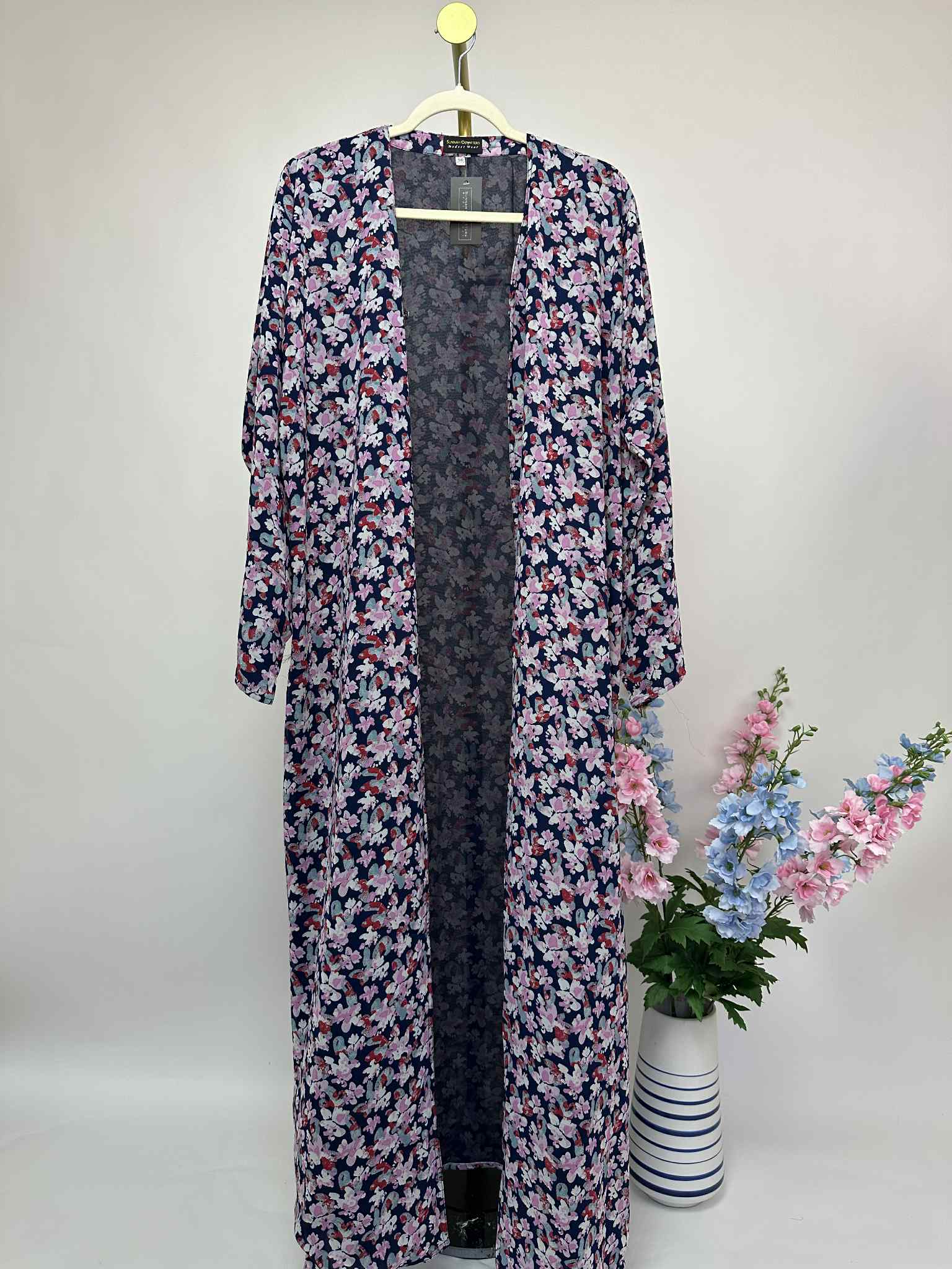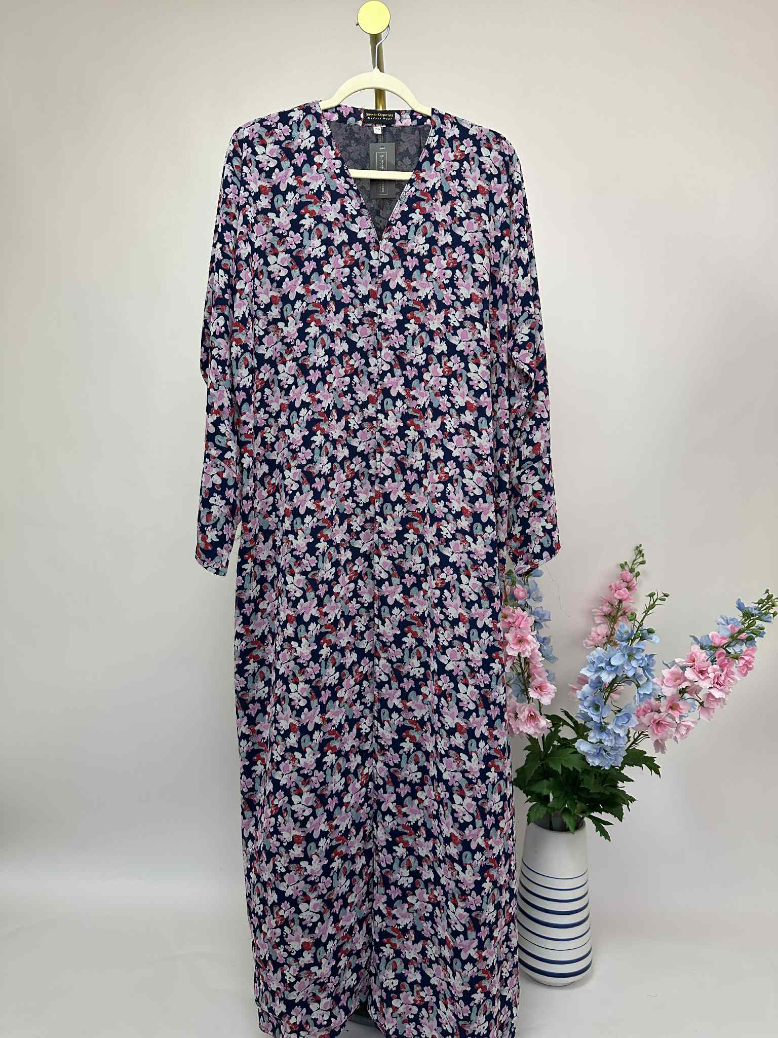 Floral Print Chiffon Open Abaya - Navy / Pink