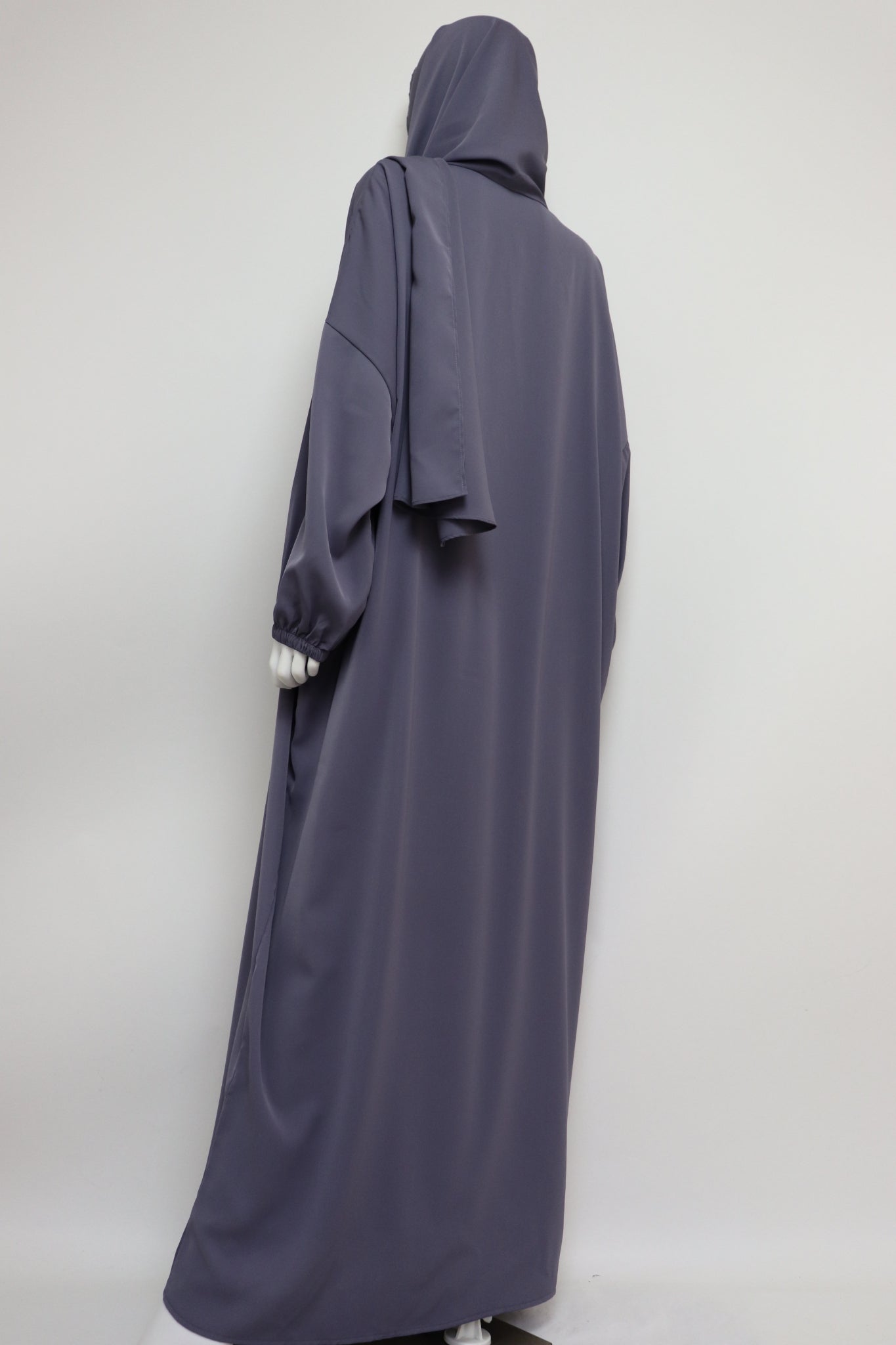 Abaya with built in hijab. Can be worn as a prayer dress. Pockets on both sides.
